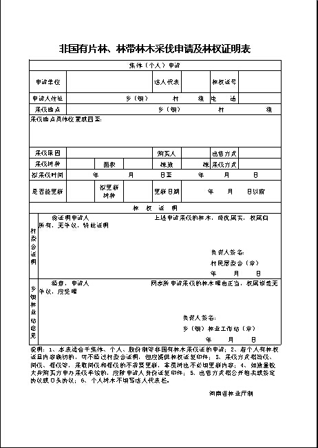 非国有片林、林带林木采伐申请及林权证明表.xls